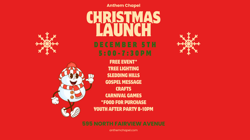 Join us on this fun evening as we launch the Christmas season together! We have a wonderful evening planned! Join us for sledding hills, a snow play area, crafts, carnival games, a gospel message and tons of fun!