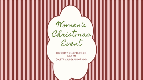Ladies, we are excited to spend an evening together this Christmas season on Thursday, December 11th. We will have worship and carols, a Christmas message on hope, our famous Christmas Market, as well as dessert and hot drinks. Invite a friend and join us for this special evening. All ages are welcome.